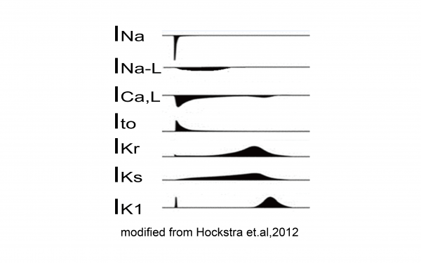 A. 人心室肌动作电位示意图及各离子通道构成;